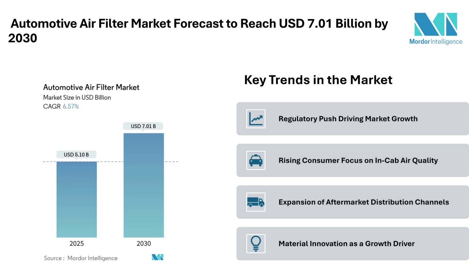 Rising global vehicle ownership and aging fleets are driving demand for automotive air filters from both OEMs and the aftermarket. Understanding the market share between these segments is key for stakeholders to track growth and remain competitive.