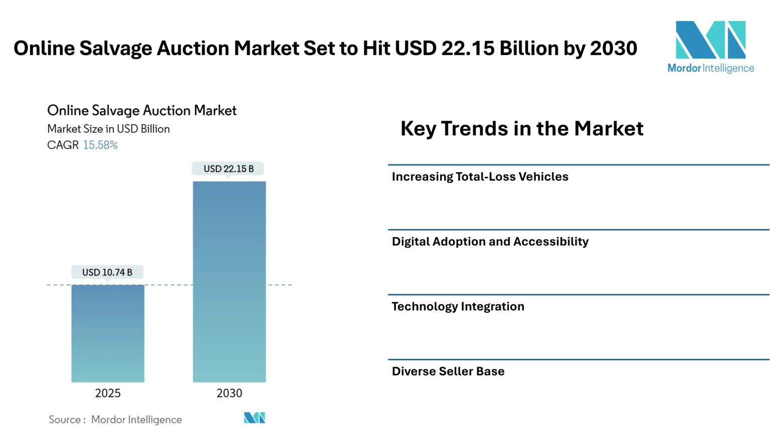 - Increasing Total-Loss Vehicles: Higher repair costs and complex vehicle electronics are contributing to rising total-loss rates, ensuring a steady supply of vehicles for online auctions.